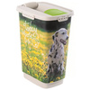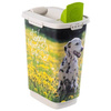 Średniej wielkości, funkcjonalny pojemnik Rotho do przechowywania karmy dla Twojego psa. Pokrywa wyposażona została w uszczelkę oraz cztery zatrzaski, które zapewnią szczelność i ochronę przed wydostawaniem się niepożądanych zapachów. Dodatkowo szczelne zamknięcie uniemożliwia psu dostanie się do środka. Pokrywa jest wyposażona w otwierany dozownik ułatwiający odmierzanie potrzebnych ilości karmy. Praktyczne uchwyty na pokrywie oraz od spodu pojemnika ułatwią dozowanie nawet wtedy gdy pojemnik będzie wypełniony po brzegi. Można również dozować karmę bezpośrednio z pojemnika za pomocą dołączonej do zestawu łopatki. Drukowane motywy w technologi IML są zintegrowane z tworzywem sztucznym, dzięki czemu przedstawiony motyw nie wyblaknie nawet po częstym czyszczeniu.