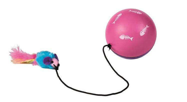 Koty to prawdziwi łowcy. Ten naturalny instynkt często daje o sobie znać podczas zabawy. Zabawka Trixie Turbinio to plastikowa piłka z silnikiem i myszką na sznurku - dodatkowo pobudza, zapewniając Twojemu kotu długie godziny wspaniałych harców! Po uruchomieniu różowa piłka toczy się w różnych, przypadkowych kierunkach ciągnąc za sobą kolorową myszkę z pierzastym ogonem. Takie rozwiązanie sprawia, że pluszowa zabawka wygląda jakby była żywa, zachęcając kota do pogoni i zabawy. Do piłeczki można przyczepić dowolny gadżet, co pozwoli Twojemu pupilowi uniknąć monotonii. Zabawka marki Trixie jest zasilana baterią – „paluszkiem” AA (brak baterii w zestawie).