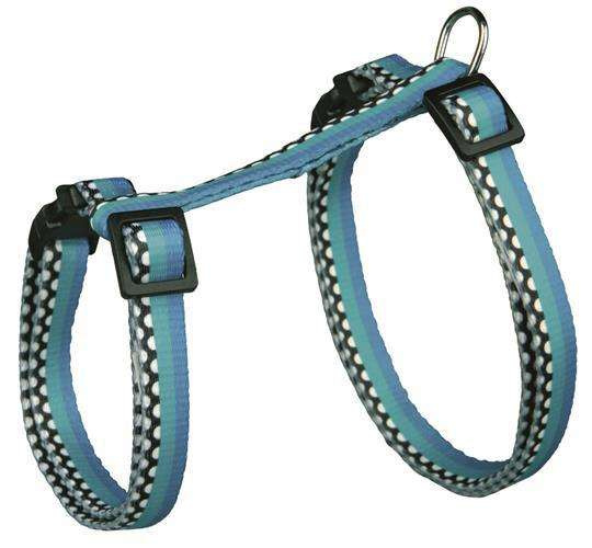 Szelki regulowane Trixie wykonane z nylonu, przeznaczone dla dorosłych kotów. Do zestawu jest dołączona smycz taśmowa w pełni regulowana. Szelki posiadają klamry zatrzaskowe gwarantujące pewne zapięcie.