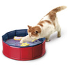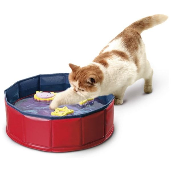 Większość kotów nie przepada za kąpaniem się w wodzie, dlatego basen Beeztees Splash przeznaczony jest głównie do zabawy i sprawdza się doskonale, zapewniając godziny nieprzemijającej rozrywki. Basen napełnia się wodą i wrzuca do niego zabawki, które znajdują się w zestawie. Kot z natury jest łowcą, więc od samego początku zabawy będzie chciał chwycić swoimi łapkami pływające przedmioty, będzie nieustannie polował na swoją "zdobycz". Gdy w basenie znajduje się woda, jego dno połyskuje, odbija światło oraz wodę. Wszelakie odbicia w wodzie pobudzą ciekawość kota i dodatkowo zmotywują go, do zdecydowanie dłuższej zabawy. Twój kot nie lubi się bawić albo szybko się nudzi? Zaufaj nam! Z tą wyjątkową zabawką dla kotów nie jest to możliwe. Pamiętaj, żeby zawsze mieć oko na swojego kota podczas zabawy.