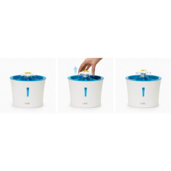 Unikalna konstrukcja, która pozwala na 3 różne ustawienia natężenia przepływu wody: łagodny przepływ, spieniona woda, lub spokojna rzeka. Woda przepływa przez trójfazowy filtr składający się z drobnej fizeliny, oczyszczający ją z zawiesin i osadów, zapobiegający rozwojowi bakterii i usuwający chlor, tak jak jego pochodne oraz zmiękcza wodę usuwając z niej magnez i wapń przez co chroni układ moczowy kota.