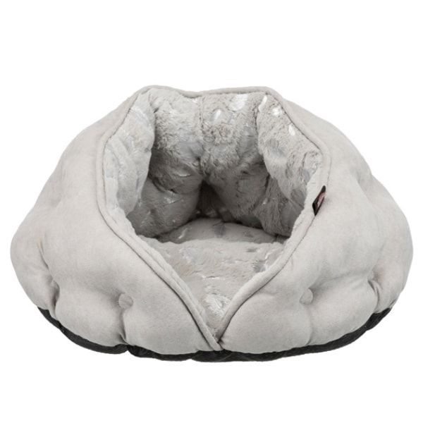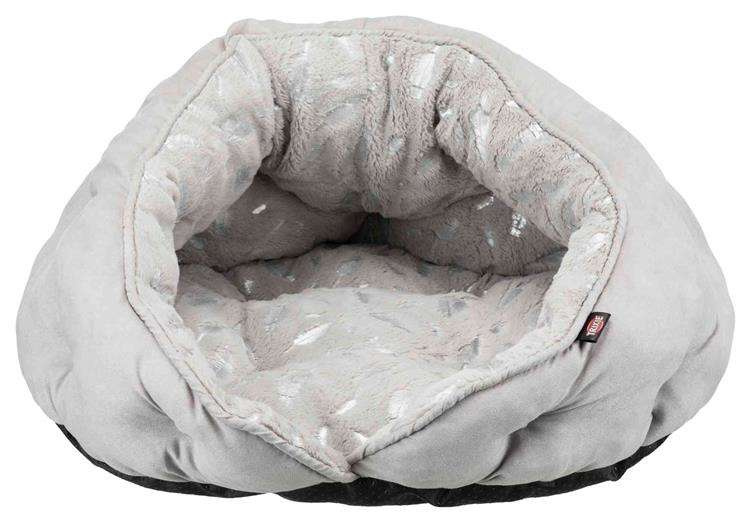Trixie legowisko Feather dla psa to zamknięta budka, w której Twój pies poczuje się wyjątkowo i bardzo komfortowo. Miejsce do odpoczynku zostało wykonane po stronie zewnętrznej z materiału, który imituje zamsz, natomiast wewnątrz znajduje się miękki i milutki plusz. Zaprojektowano je tak, by zachowywało ciepło i nie nasiąkało brudem. Legowisko zostało wykonane z materiałów najwyższej jakości w kolorze szarym. Jest bardzo miłe w dotyku. Środek budki został uatrakcyjniony przez wykorzystanie nadruku srebrnych i eleganckich piór. Podstawa legowiska jest antypoślizgowa, dzięki czemu zachowa ono swoje docelowe miejsce. Legowisko Trixie idealnie wpasuje się w każde nowoczesne i jasne wnętrze.