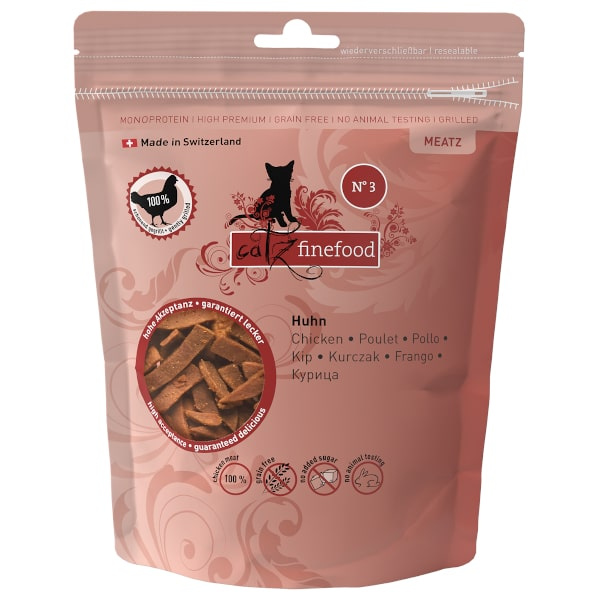 Wyjątkowa przekąska dla kotów catz finefood Meatz®, to grillowane, a następnie suszone powietrzem smakołyki o wysokiej zawartości mięsa. Stanowią doskonały dodatek do karmy lub ciekawą zachętę do współpracy z opiekunem. Trudne codzienne sytuacje stają się proste dzięki catz finefood Meatz®, są doskonałym wsparciem podczas wizyt u weterynarza, nauki kuwety, przyzwyczajenia do transportera.