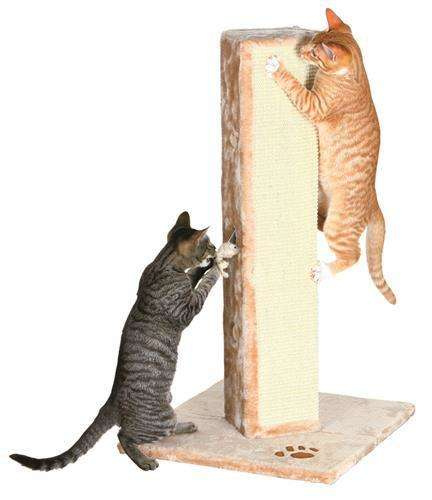 Trixie drapak stojący Soria dedykowany kotom wszystkich ras i rozmiarów. Drapak dla kota to niezbędny przedmiot gdy masz mruczka, dlatego że pupil drapać musi. Ściera pazury, a ponadto jako zwierzę terytorialne – znaczy swoje miejsce, czyniąc je bardziej przyjaznym. Jeśli kotu nie zapewnisz drapaka, zajmie się znaczeniem ścian, mebli albo ulubionych krzeseł. Świetna alternatywa podczas codziennych zabaw dla Twojego pupila. Pełni funkcje nie tylko drapaka do pazurów, ale również miejsca do aktywnej zabawy. Składa się z miękkiej podstawy, ozdobionej aplikacją łapki, pionowego słupka do drapania oraz zabawek. W górnej i dolnej części znajdują się pluszowe kuleczki, wewnątrz których znajduje się mikrochip wydający odgłosy interesujące dla kotów. W środkowym otworze znajduje się pluszowa myszka z grzechotką w środku. Drapak został wykonany z najwyższej jakości materiałów. Jest niezwykle przyjemny w dotyku. Całość świetnie prezentuje się w nowoczesnym wnętrzu.
