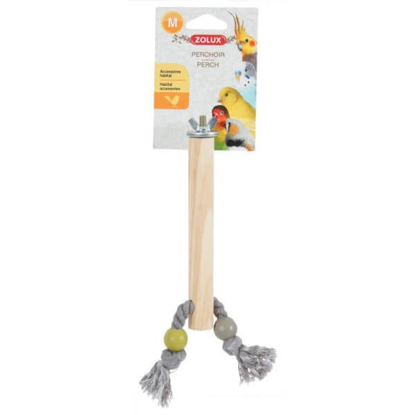 Żerdka drewniana marki Zolux wykonana została z jasnego, naturalnego drewna. Zabawką dla ptaka będzie sznurek zakończony kulką z supełkiem. Taka żerdka to niezbędne wyposażenie każdej klatki - atrakcyjny wygląd stymuluje aktywność intelektualną Twojego ptaka.