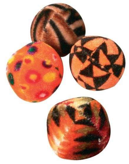 Zestaw 4 wielokolorowych piłeczek obszytych pluszem - doskonały zestaw, który zaintryguje każdego kota!