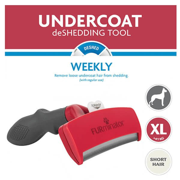 FURminator XL dla psów olbrzymich ras o krótkiej sierści, urządzenie służące do usuwania obumarłej sierści i przerzedzania podszerstka. Dzięki usunięciu zbędnej okrywy pies czuje się lżej i utrzymuje optymalne ciepło. Podczas codziennej higieny połyka mniejszą ilość sierści, tym samym zapobiegając powstawaniu kul włosowych. Narzędzie FURminator Undercoat deShedding Tool dla krótkowłosych psów ras olbrzymich wyczesuje podszerstek ograniczając linienie do 99%. Należy stosować na suche włosy, 1-2 razy w tygodniu, przez 10-20 minut jednorazowo. FURminator jest produktem profesjonalnym, a jednocześnie niezwykle łatwym w użyciu.