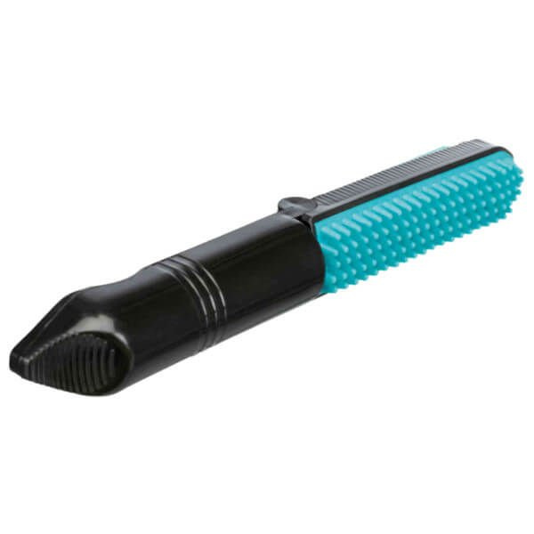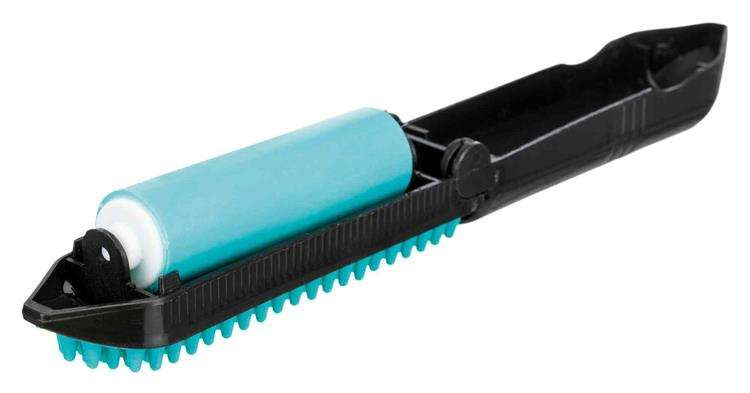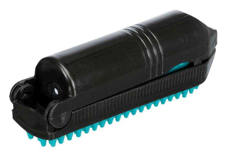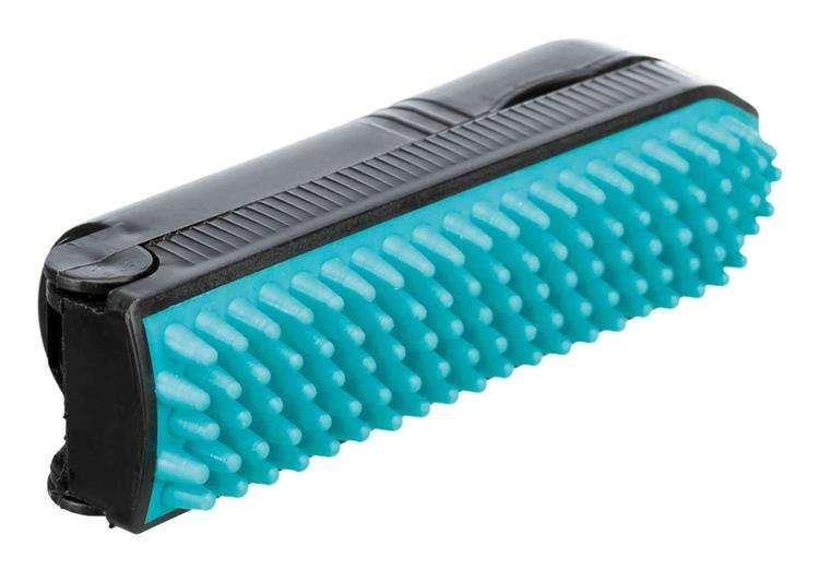 - szczotka z silikonowymi końcówkami usuwa luźne włosy z tkanin,