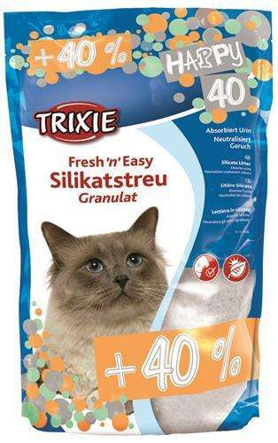 Ściółka silikonowa dla kota, która pochłania mocz i neutralizuje zapach. Prosty w stosowaniu, naturalny, nietrujący, zwalczający bakterie, przyjazny dla środowiska, przyjemny lekki, oszczędny, niepylący i tym samym nadający się dla alergików. Dzięki wielu małym otworom w żwirku, ciecz może zostać wchłonięta w ciągu kilku sekund. Cząsteczki zapachowe pozostają w ziarnach, a ciecz wyparowuje. Żwirek Trixie Fresh 'n' Easy jest wyjątkowo chłonny i neutralizuje zapach w parę sekund. Utrzymuje kuwetę w czystości i świeżości przez okres do miesiąca.