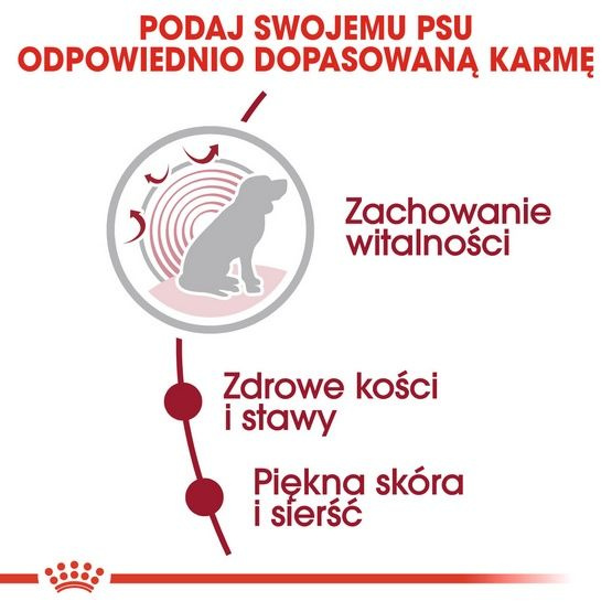 Rozwiązanie żywieniowe opracowane specjalnie dla dorosłych psów ras średnich (od 11 do 25 kg).
