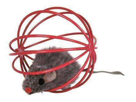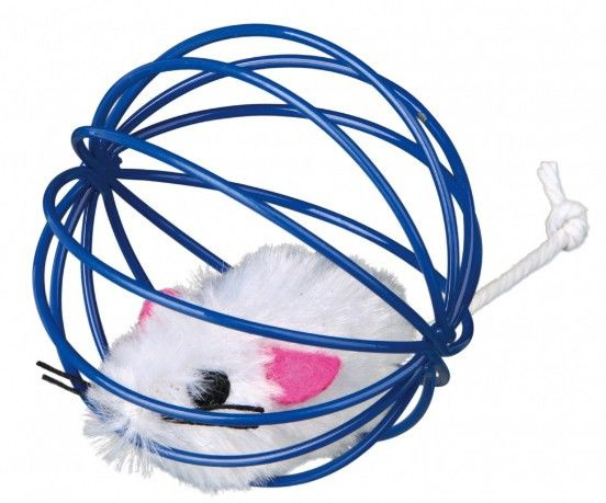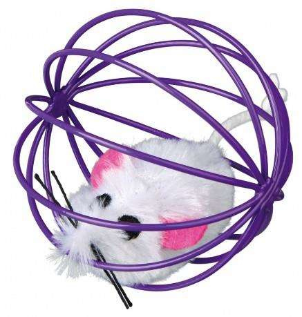 Zabawka dla kota - pluszowa myszka w drucianej piłce.