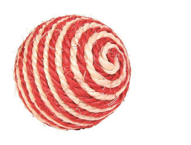 Piłka jest z sizalu, materiału wytrzymałego na drapanie.