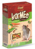 Mieszanka pełnoporcjowa dla szczurów, odpowiednio zbilansowana, w której skład wchodzą podstawowe składniki diety gryzoni w naturalnym środowisku. Jest to mieszanka najlepszej jakości zbóż i nasion oraz granulatów wzbogacona warzywami i pokarmem mięsnym, który dostarcza niezbędnego w rozwoju i funkcjonowaniu organizmu szczurów białka zwierzęcego. Marchew z wysoką zawartością beta-karotenu, czyli prowitaminy A, dostarcza ważnych związków mineralnych, takich jak wapń, żelazo, fosfor, miedź, cynk, molibden, magnez, jod oraz potas. Pestki dyni zawierającego dużą ilość fitosteroli i nienasyconych kwasów tłuszczowych oraz łatwo strawne białka, witamina E i mikroelementy jak selen, magnez, cynk, miedź i mangan. Liście mięty zawierają olejek eteryczny, witaminę C oraz A. Dodatek mięty wspomaga trawienie, poprawia apetyt oraz przeciwdziała wzdęciom.