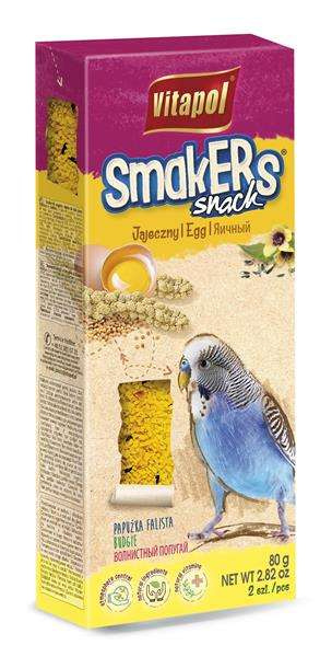 Smakers będący zarówno smakołykiem, jak i pożywnym dodatkiem do codziennej diety papużek falistych. Białko z jaj zapewnia wszystkie niezbędne dla prawidłowego funkcjonowania organizmu aminokwasy. Niezbędny dodatek w żywieniu ptaków przed i w czasie lęgów oraz w okresie pierzenia. Stanowi również idealne uzupełnienie diety ptaków w czasie spoczynku.