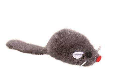 Zabawka dla kota: 5-centymetrowa myszka z szarym futerkiem.
