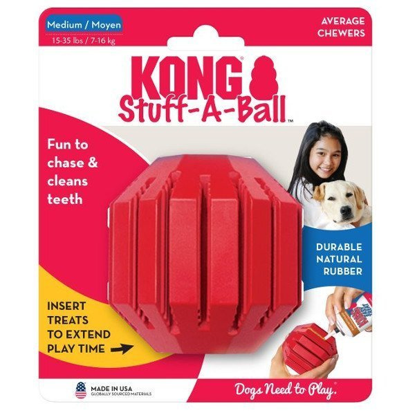 Kong to zabawki dla psów kochających gryźć. Marka oferuje zabawki wyjątkowo wytrzymałe, zapewniające godziny nieograniczonej zabawy. Zabawki dla psów KONG zapewniają zarówno psychiczną i fizyczną stymulację we wszystkich rozmiarach, dla psów wszystkich ras. KONG Stuff-A-Ball możesz wypełnić przysmakami twardymi, ciasteczkami jak i pastą.