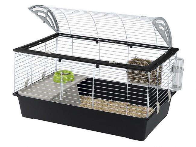 Klatka jest przewidziana dla królików lub większych gryzoni, dlatego pozwala odchylić cały sufit - duży otwór daje łatwy dostęp do pupila. Ponadto oddzielana kuweta pozwala również łatwo utrzymać higienę w klatce.