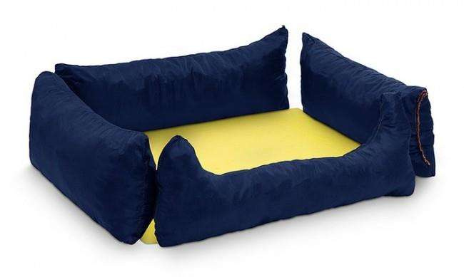 Wkład do kanapy Bimbay stanowi gąbkowy materac oraz cztery części tworzące boki legowiska. Materiał gąbkowy utrzymuje kształt oraz dopasowuje się do ciała zwierzęcia, zapewniając mu komfort. Dodatkowo materiał gąbkowy zaszyto w ochronnym futerale. Docelowy kształt legowiska pozwala psu przyjąć wygodną pozycję wraz z podparciem.