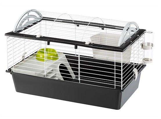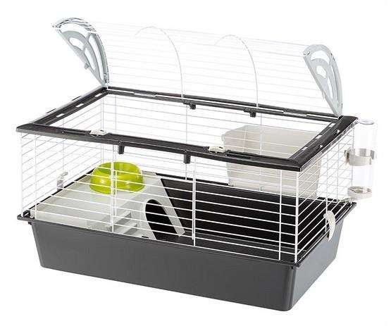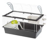 Klatka jest przewidziana dla królików lub większych gryzoni, dlatego pozwala odchylić cały sufit - duży otwór daje łatwy dostęp do pupila. Ponadto oddzielana kuweta pozwala również łatwo utrzymać higienę w klatce.
