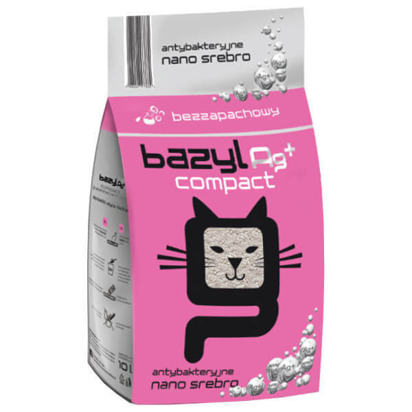 Bazyl Ag+ polskiej produkcji, zbrylający żwirek dla Twojego kota. Żwirki Bazyl Ag+ Super Premium to pierwsze i jedyne na rynku żwirki wzbogacone dobroczynnym nano srebrem, które jako naturalny antybiotyk ma własności aseptyczne i dezynfekujące. To połączenie najwyższej jakości bentonitu (min. 80% montmorylonitu) i jonów antybakteryjnego nano srebra. Nano srebo działa permanentnie i zapobiega rozwojowi bakterii i grzybów. Dzięki czemu nieprzyjemny zapach powstały w kuwecie jest całkowicie neutralizowany. Proces ten zachodzi wewnątrz bentonitu, gdyż nano srebro zamknięte jest w jego strukturze. Żwirki posiadają atest Państwowego Zakładu Higieny, a ich bardzo wysokie parametry są na bieżąco monitorowane i kontrolowane przez nowoczesne laboratorium w Zakładzie Przetwórstwa Surowców Mineralnych w Jaśle. Żwirki Bazyl Ag+ dostępne są w 2 frakcjach: drobnej – compact (0,7-2mm) i grubszej – standard (2-5mm); bez zapachu oraz w wersji zapachowej – fresh, lavender i baby powder.
