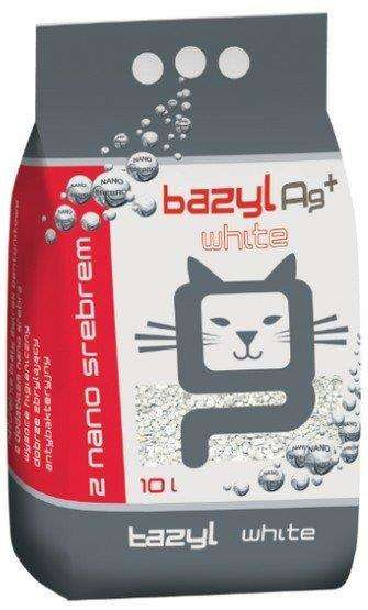 Żwirek Bazyl Ag+ White to unikatowy naturalnie biały bentonit o najwyższych parametrach wzbogacony o dobroczynne nano srebro, które jako naturalny antybiotyk ma własności antyseptyczne i dezynfekujące. Jony nano srebra działają permanentnie i zapobiegają rozwojowi bakterii i grzybów. Żwirek Bazyl Ag+ White posiada jednorodną drobna frakcję. Nie pyli, nie przykleja się do kocich łapek. Żwirek Bazyl Ag+ White perfekcyjnie się zbryla, tworząc łatwe do usunięcia bryłki. Wchłania wilgoć i nieprzyjemną woń, pozostawiając przyjemną świeżość. Dodatek nano srebra sprawia, że kocia kuweta jest miejscem higienicznym i wolnym od zarazków oraz przykrych zapachów. Bazyl Ag+ White jest zupełnie bezpieczny dla dzieci i przyjazny dla alergików.