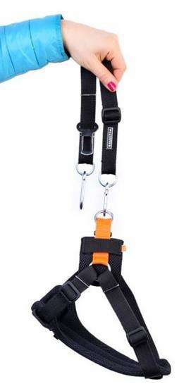 • Smycz wyposażona jest w specjalną stalową klamrę umożliwiającą szybkie wpięcie psa do standardowego uchwytu pasa bezpieczeństwa oraz stalowy karabińczyk umożliwiający zapięcie psa do systemu Isofix lub do uchwytów w bagażniku.