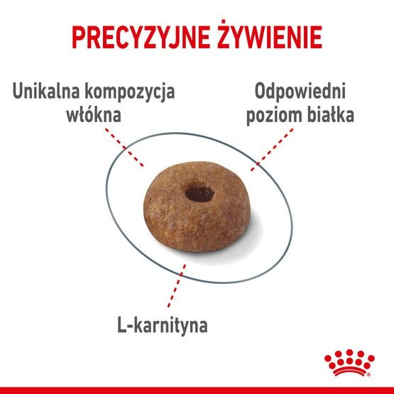 O 17%* mniej spontanicznie pobranych kalorii oraz zapewnienie kotu uczucia sytości, przy wyłącznym stosowaniu karmy Weight Care. *Badanie wewnętrzne Royal Canin, 2006 - Spontaniczne dzienne spożycie w porównaniu z podobną karmą dla kotów o ograniczonej zawartości kalorii.