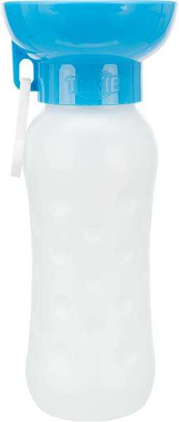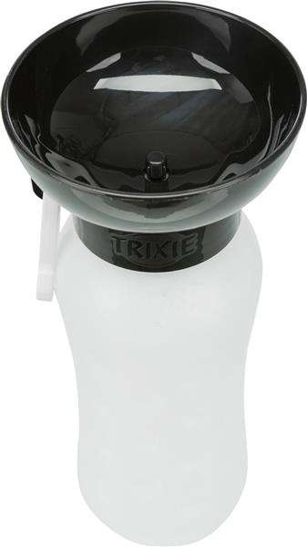 Trixie butelka z poidełkiem dla Twojego psa, wykonana jest z plastiku. Idealna na długie spacery i w każdej podróży. Wygodna do noszenia, ponieważ można zaczepić ją do paska, albo przymocować do roweru czy plecaka. Po naciśnięciu butelki woda wypływa do górnej części miseczki, zabezpieczenie przed wylewaniem się wody, stanowi zawór zatrzaskowy do otwierania i zamykania górnej części miski. Pies zawsze będzie miał dostęp do świeżej wody i własnej miseczki.