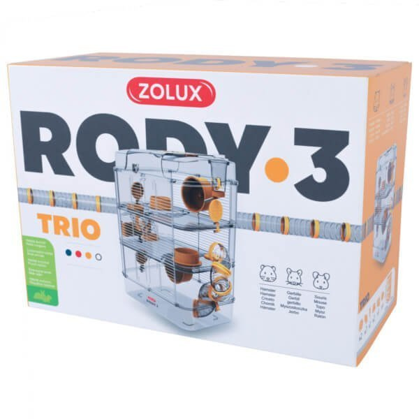 Zolux klatka Rody Trio 3 dla małych gryzoni z możliwością rozbudowy i modyfikacji. Przeznaczone dla małych odmian chomików, myszy czy myszoskoczków. Przejrzyste ścianki pozwalają na obserwację zwierzęcia, gdy się bawi i gdy śpi. Nowoczesny wygląd klatki Rady Trio 3 zakupionej w Megazoologiczny.pl pasuje do każdego wnętrza. Plastik, z którego wykonano ściany, jest nieszkodliwy dla Twojego pupila. Klatki Rody mogą być łączone w nieskończenie wiele kombinacji. Soczyste barwy dodatkowych elementów wyposażenia nadają całości jeszcze bardziej nowoczesny wygląd. Co więcej, klatka z otworami z obu stron pozwala połączyć ze sobą kilka klatek. Możliwości pod względem kształtów i kolorów są nieskończone! Klatka nie zajmuje wiele miejsca i posiada uchwyt ułatwiający jej przenoszenie. Drzwiczki w górnej części klatki pozwalają bez trudu złapać chomika czy mysz. Boczne zaczepy umożliwiają w prosty sposób rozłożenie klatki i szybkie jej wysprzątanie. W każdej chwili możesz zmodyfikować samemu Rody Trio o akcesoria Rody.