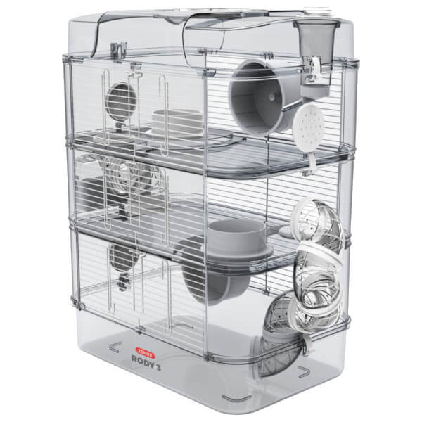 Zolux klatka Rody Trio 3 dla małych gryzoni z możliwością rozbudowy i modyfikacji. Przeznaczone dla małych odmian chomików, myszy czy myszoskoczków. Przejrzyste ścianki pozwalają na obserwację zwierzęcia, gdy się bawi i gdy śpi. Nowoczesny wygląd klatki Rady Trio 3 zakupionej w Megazoologiczny.pl pasuje do każdego wnętrza. Plastik, z którego wykonano ściany, jest nieszkodliwy dla Twojego pupila. Klatki Rody mogą być łączone w nieskończenie wiele kombinacji. Soczyste barwy dodatkowych elementów wyposażenia nadają całości jeszcze bardziej nowoczesny wygląd. Co więcej, klatka z otworami z obu stron pozwala połączyć ze sobą kilka klatek. Możliwości pod względem kształtów i kolorów są nieskończone! Klatka nie zajmuje wiele miejsca i posiada uchwyt ułatwiający jej przenoszenie. Drzwiczki w górnej części klatki pozwalają bez trudu złapać chomika czy mysz. Boczne zaczepy umożliwiają w prosty sposób rozłożenie klatki i szybkie jej wysprzątanie. W każdej chwili możesz zmodyfikować samemu Rody Trio o akcesoria Rody.