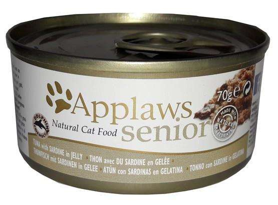 Applaws Filet z Tuńczyka z Sardynką w Galaretce (Senior) jest w 100% naturalnym pokarmem uzupełniającym dla starszych kotów.