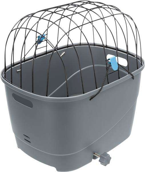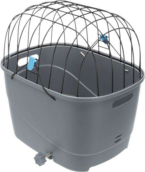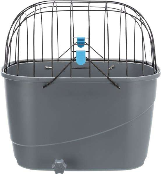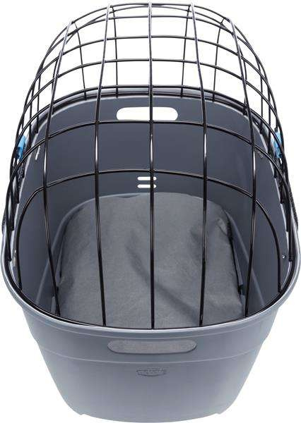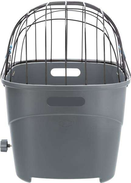 Trixie transporter na bagażnik rowerowy dla psa, idealny do zabierania psiaka w podróże za miasto. Górne, druciane okratowanie jest malowane proszkowo. Dół to wytrzymały plastik z antypoślizgową poduszką wewnątrz. Górna część ma szybkie mocowanie za pomocą gumek ze specjalnym klipsem. Transporter zapewnia psu wygodę i ochronę. Może być zastosowany do bagażników rowerowych o szerokości 6–16 cm i średnicy rozpórki do ok. 12 mm. Nadaje się również do montażu na rowerach elektronicznych, pod warunkiem, że bateria znajduje się pod bagażnikiem.