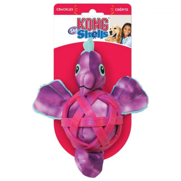 Zabawka Sea Shells Seahorse jest wykonana z najwyższej jakości materiałów. Pluszak stworzony do szarpania i miętoszenia otoczony gumową obręczą. Szeleszcząca w gryzaku maskotka zainteresuje i zachęci Twojego Pupila do zabawy. Dzięki zabawkom Kong możesz skutecznie zapobiec obgryzaniu przez pupila rzeczy, które nie są do tego przeznaczone. Konik morski może służyć do aportowania lub do siłowania się. Zabawka odbija się po zgnieceniu, dodatkowo trzaski podczas gryzienia, nagradzają i pobudzają naturalny instynkt żucia Twojego psa.