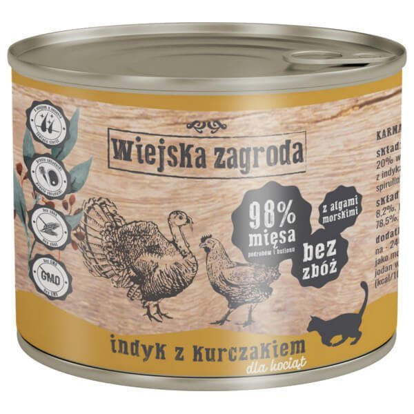 Wiejska zagroda indyk z kurczakiem dla kociąt 200 g