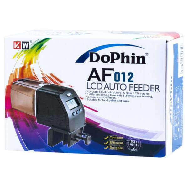 Karmidło automatyczne od marki Happet AF-012 nadaje się do akwariów słodko i słonowodnych. Posiada dokładne sterowanie elektroniczne i czytelny wyświetlacz LCD. Posiada możliwości 5-ciu ustawień czasowych z 1-3 cyklami karmienia (do 5-ciu karmień na dobę!). Karmidło jest odpowiednie dla granulatu i płatków. Łatwy w obsłudze i montażu sprzęt do Twojego akwarium. Urządzenie zasilane jest dwoma bateriami LR6 AA 1,5V.