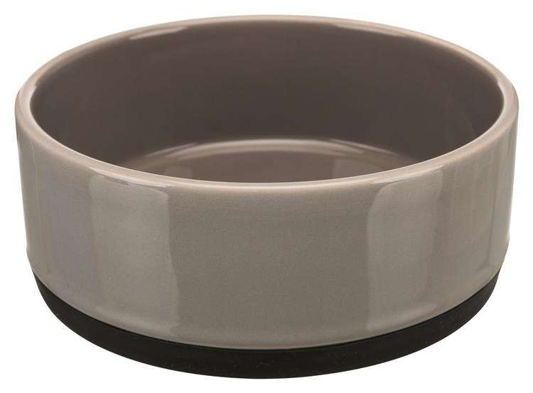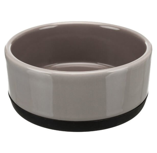 Miska koloru szarego od marki Trixie. Można w niej podawać wodę jak i również pokarm suchy czy mokry. W miskach ceramicznych można bez obaw dodawać suplementy takie jak np. Omegatrin lub inne produkty zawierające estry Omega 3, 6, 9. Jest ciężka i stabilna dzięki gumowej podstawie. Nie ślizga się po podłodze podczas jedzenia. Wysoki brzeg zapobiega rozsypywaniu karmy i wylewaniu wody przez pupila.