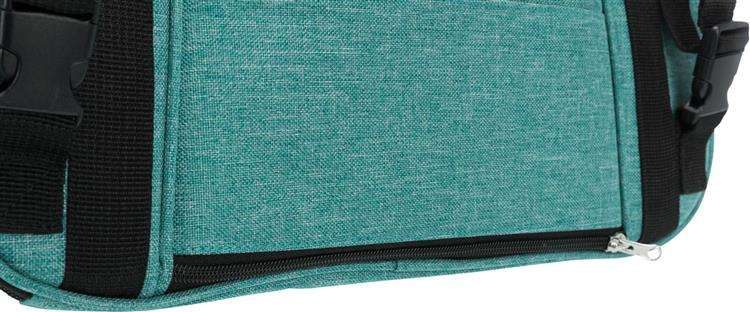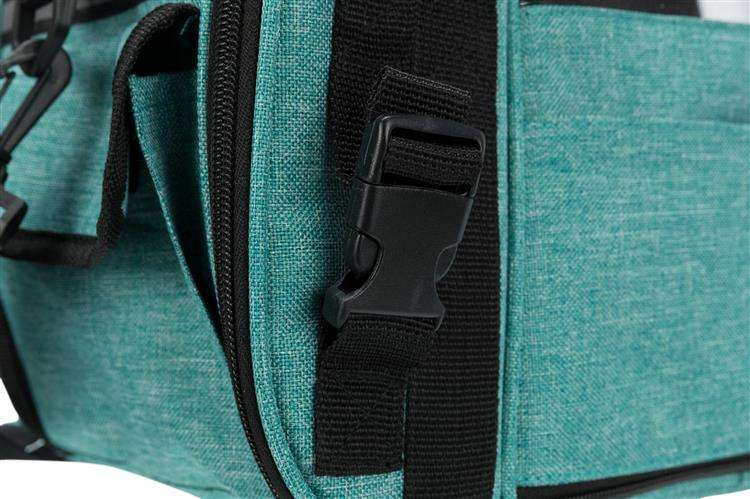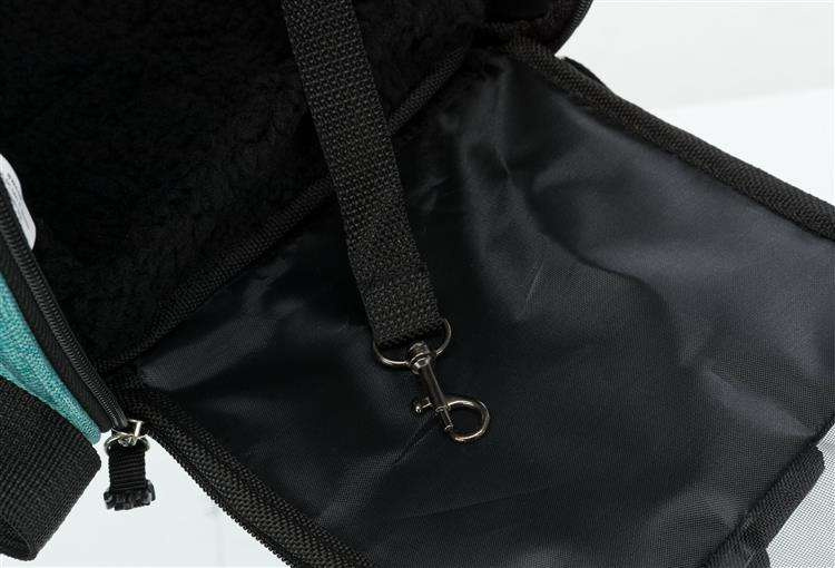 Trixie torba, nosidło Madison dla psa albo kota posiada obicie z wytrzymałego poliestru. Transporter prezentowany przez Megazoologiczny.pl można otwierać z przodu, aby Twój pupil mógł wskakiwać do środka. Podbicie wykonano z imitacji kożuszka, zdejmowany pas naramienny jest w pełni regulowany dla zwiększenia wygody właściciela. Boczna kieszeń jest bardzo poręczna, można do niej zapakować przysmaki dla psa czy kota. Transporter wyposażony jest w krótką smycz, która zapobiega niespodziewanemu wyskoczeniu pupila. Wkładki z siateczki zapewniają optymalna cyrkulacje powietrza podczas każdej wspólnej podróży.