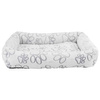 Tixie legowisko dla psa Nando to świetny sposób, aby zapewnić komfortowy wypoczynek Twojemu pupilowi. Wypełnienie z pianki 2 cm sprawia, że jest to idealne, miękkie posłanie. Zagłówek jest wypełniony flauszem poliestrowym 10 cm. Mocno zamocowana poduszka nie przesuwa się podczas wypoczynku, a antypoślizgowa podstawa zapewnia pozostanie legowiska na swoim miejscu. Całość wykonana z najlepszej jakości materiałów. Obszycie z motywem psich łap nadaje dodatkowej elegancji. Produkt można prać ręcznie.