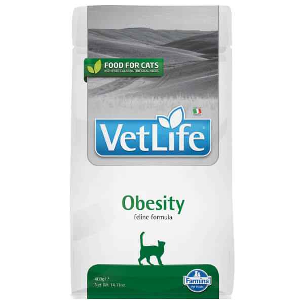 Farmina Vet Life Obesity - weterynaryjna, karma dla dorosłych kotów z nadwagą lub otyłością oraz chorujących na cukrzycę. Zmniejszona gęstość energetyczna produktu oraz mniejsza zawartość węglowodanów sprawiają, że produkt jest szczególnie polecany jest w leczeniu otyłości u zwierząt.