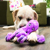 Kong SoftSeas Octopus to zabawka wykonana z grubego pluszu, który sprawia, że psiak nie może się oprzeć jego chwytaniu, a jego długie kończyny pobudzają w psach chęć szarpania, zaspokajając jednocześnie ich naturalne instynkty. Idealna zabawka do przytulania lub delikatnej zabawy w domu, ponieważ piszczy i marszczy się, zapewniając szczeniakom i psom dorosłym długotrwałą zabawę. Spód ośmiornicy został podszyty eko skórą, co gwarantuje Wam żywotność zabawki na dłuższy okres czasu.