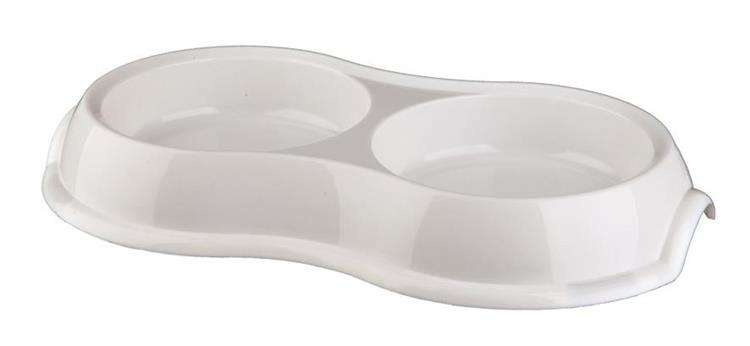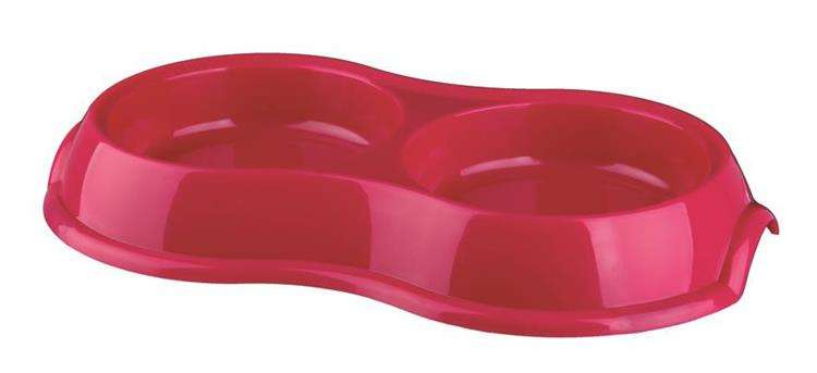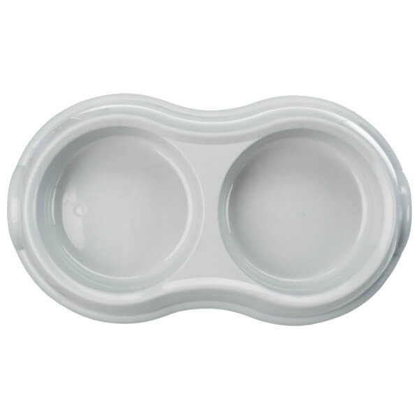 Trixie podwójna miska plastikowa dla kota, psa, w której można podawać wodę i karmę jednocześnie. Posiada gumowe, antypoślizgowe podnóżki, które zapobiegają przesuwaniu się, a tym samym rozsypywaniu karmy przez Twojego pupila. Waga miski wpływa na jej stabilność. Ponadto nowoczesny wygląd, modna kolorystyka i futurystyczny kształt wspaniale wkomponuje się w każde wnętrze. Miska dla kota wykonana jest z trwałego i odpornego na uszkodzenia tworzywa, które można myć ręcznie i w zmywarce. Przed myciem w zmywarce, proszę usunąć gumowe nóżki antypoślizgowe.