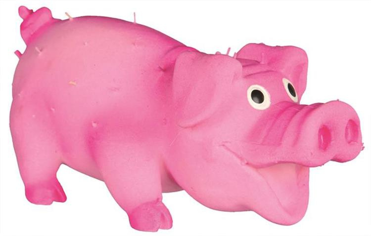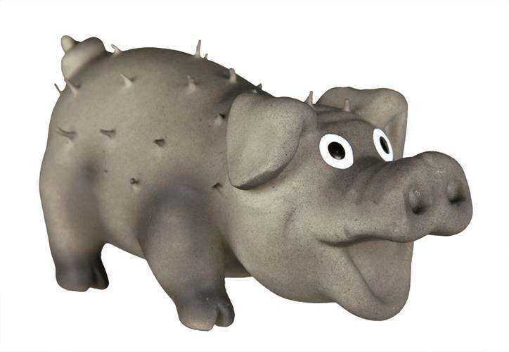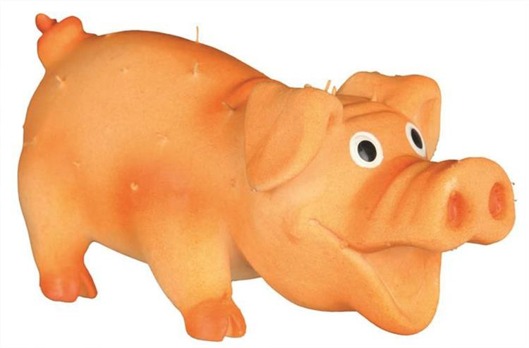 Trixie świnia z lateksu, to zabawka dla psa, która przy naciśnięciu imituje zabawny odgłos chrumkania. Produkt dobrze się sprawdza jako zabawka do aportowania i do gryzienia. Dzięki piszczałce, świnia będzie interesowała Twojego psa przez długi czas. Środek zabawki stanowi wypełnienie z flauszu poliestrowego. Kolce na zabawce idealnie się sprawdzą czyszcząc podczas gryzienia zęby Twojego pupila.