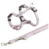 Wytrzymałe szelki Trixie ze smyczą wykonane z parcianej taśmy. Są w pełni regulowane, wygodnie i nie przeszkadzają Twojemu szczeniakowi w noszeniu. Regulowane paski na kark i brzuch dają możliwość pełnego dopasowania. Specjalna budowa zapobiega otarciom skóry, odkształceniom sierści oraz nie wywiera nacisku na szyję psa. Motyw nadrukowany będzie wyróżniał Twojego szczeniaka z tłumu. Smycz posiada 3 stopnie regulacji.