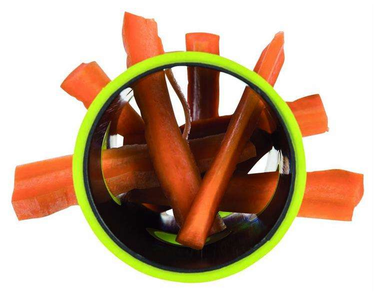 Trixie walec na przysmaki dla królika albo świnki morskiej wykonany jest z nieszkodliwego dla zwierzęcia plastiku TPR (kauczuk syntetyczny nie szkodliwy dla zwierząt). W każdej chwili może być napełniany przez Ciebie smakołykami dla Twojego pupila. Dzięki gumowemu pokryciu zabawka toczy się bezszelestnie. Taki sposób podawania ssakowi przekąsek, czy codziennego karmienia pobudza jego aktywność i umysł. Produkt nadaje się do mycia w zmywarce. Możesz walec napełnić sianem i roślinami zielonymi, owocami i warzywami.