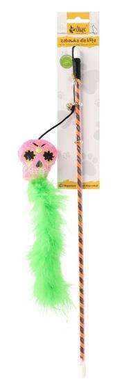 Strrasznie pobudzająca do zabawy wędka dla kota meksykański Upiorek! Z wędki Dingo na sznurku zwisa prawdziwy Upiorek! Jest wypełniony bezpiecznym materiałem, a sam jest strrrrasznie miękki i przyjemny w dotyku. Dzięki puchatym, zielonym piórom zachęci do zabawy nawet najstraszniejszego kociego lenia. Twój kot pokocha zabawkę wędkę z tym motywem, ponieważ będzie mógł wbić w niego pazury, a także ganiać za puchatym ogonkiem! Zabawka umili Ci czas spędzony wspólnie z kotem - dzięki wygodnemu i dobrze leżącemu w dłoni kijkowi będziesz czuł się komfortowo podczas zabaw.