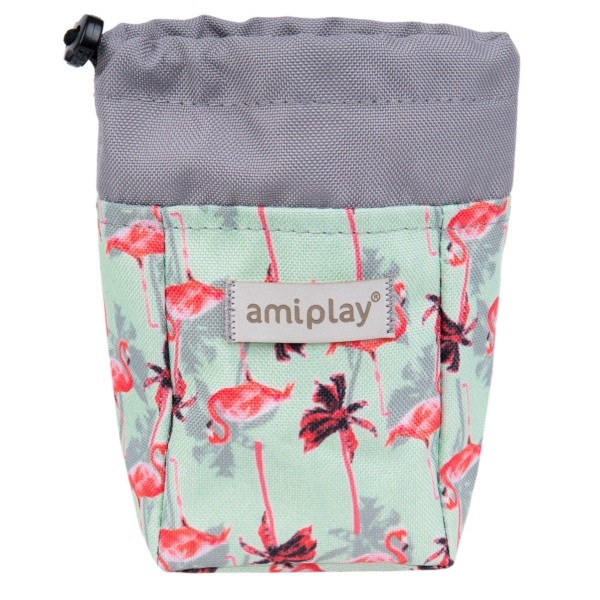 Torebka na przysmaki z serii BeHappy stanie się ważnym elementem każdego spaceru lub treningu. Nagrodzenie psa w odpowiednim momencie to bardzo ważny element każdego treningu bądź spaceru, aby wzmocnić komendę lub prawidłowe zachowanie. Dobrze mieć przysmaki zawsze pod ręką. Jest to szczególnie ważne w przypadku szczeniąt, które bardzo szybko się rozpraszają. Torebka na przysmaki amiplay Flamingo wykonana jest z bardzo trwałej tkaniny poliestrowej, odpornej na warunki atmosferyczne dzięki czemu można trenować przy każdej pogodzie. Wkład wewnątrz jest łatwy w czyszczeniu. Aby zachować higienę wystarczy wyprać całość i torebka jest znów gotowa do użycia. Jest ona barwiona dwustronnie jak pozostałe produkcji kolekcji BeHappy. Posiada szlufkę wraz z karabińczykiem, więc można przypiąć ją bezpośrednio do spodni bądź przewlec przez pasek. Aby uniknąć wysypywania się przysmaków albo chronić zawartość przed deszczem, wystarczy zamknąć saszetkę za pomocą ściągacza.