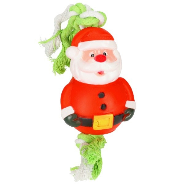 Świąteczna zabawka Dingo Mikołaj dla psa została stworzona z wysokiej jakości materiałów: plecionego, bawełnianego sznura i winylowego, piszczącego Mikołaja! Sznur został przewleczony przez środek zabawki i związany na oby dwóch końcach. Będzie idealnym prezentem pod choinkę dla grzecznego psiaka! Wbudowana piszczałka pobudzi do zabawy każdego pupila, a bawełniany sznur pomoże zadbać o higienę jamy ustnej Twojego psa! Zabawka jest wielofunkcyjna: możesz bawić się w przeciąganie, czy aportowanie ze swoim psem. Możesz też chować mu zabawkę - a to tylko część z możliwości.