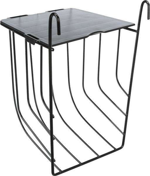 Karmidełko Trixie wykonane jest z metalu pomalowanego metodą proszkową. Metoda ta ogranicza odpryskiwanie farby. Dzięki dwóm uchwytom paśnik można zamocować w dowolnym miejscu w klatce królika czy świnki morskiej. W ten sposób ograniczamy kontakt pożywienia ze zwierzęcymi odchodami i moczem. W paśniku może podawać zarówno siano, jak i świeżą trawę.