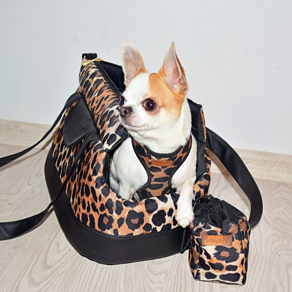 TYLKO U NAS ONLINE! Edycja specjalna toreb transportowych amiplay we wzorze Safari ze złotymi elementami! Torby w panterkę dostępne są dwóch rozmiarach S oraz L. Który drapieżnik skupi się na takie stylowe cudo? Torba transportowa amiplay Safari to doskonały wybór na każdą podróż. Wykonana z bardzo wytrzymałej tkaniny w stylowy wzór panterki oraz skóry syntetycznej w kolorze czarnym odpornej na uszkodzenia. Są to materiały najwyższej jakości, odporne na uszkodzenia i zapewniające piękny wygląd na długo. Od góry torba zapinana jest na na suwak. Dodatkowo po bokach wszyte są pasy, które umożliwiają wygodne noszenie na ramieniu. Uchwyty są optymalnej długości, aby zapewnić komfort użytkowania. W środku znajduje się krótka smycz z karabińczykiem, dzięki której można bezpiecznie przypiąć psa żeby nie wyskoczył podczas transportu oraz wyciągana podłoga, która sprawia, że torba jest wygodniejsza dla pupila. Ułatwia to także utrzymanie jej w czystości. Na boku wszyta jest kieszonka, w której można przechowywać drobne akcesoria. Kształt oraz materiały z jakich torba jest wykonana sprawią, że stanie się ona niezbędnym elementem każdej podróży. Dzięki otworowi, przez który pies może wystawić głowę i obserwować otoczenie, stres związany z transportem jest znacznie mniejszy, co korzystnie wpływa na budowanie odpowiednich skojarzeń.