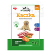 Skład: Kaczka 50% (w tym świeżo przygotowana kaczka 28%, dehydratyzowana kaczka 20%, sos z kaczki 2%), słodkie ziemniaki (26%), groszek (6%), ziemniaki, włókno buraka cukrowego, siemię lniane, suplement omega-3, minerały, bulion warzywny, pomarańcza (0,3%), żurawina, fruktooligosacharydy (FOS, 96 mg/kg), mannanooligosacharydy (MOS, 24 mg/kg).